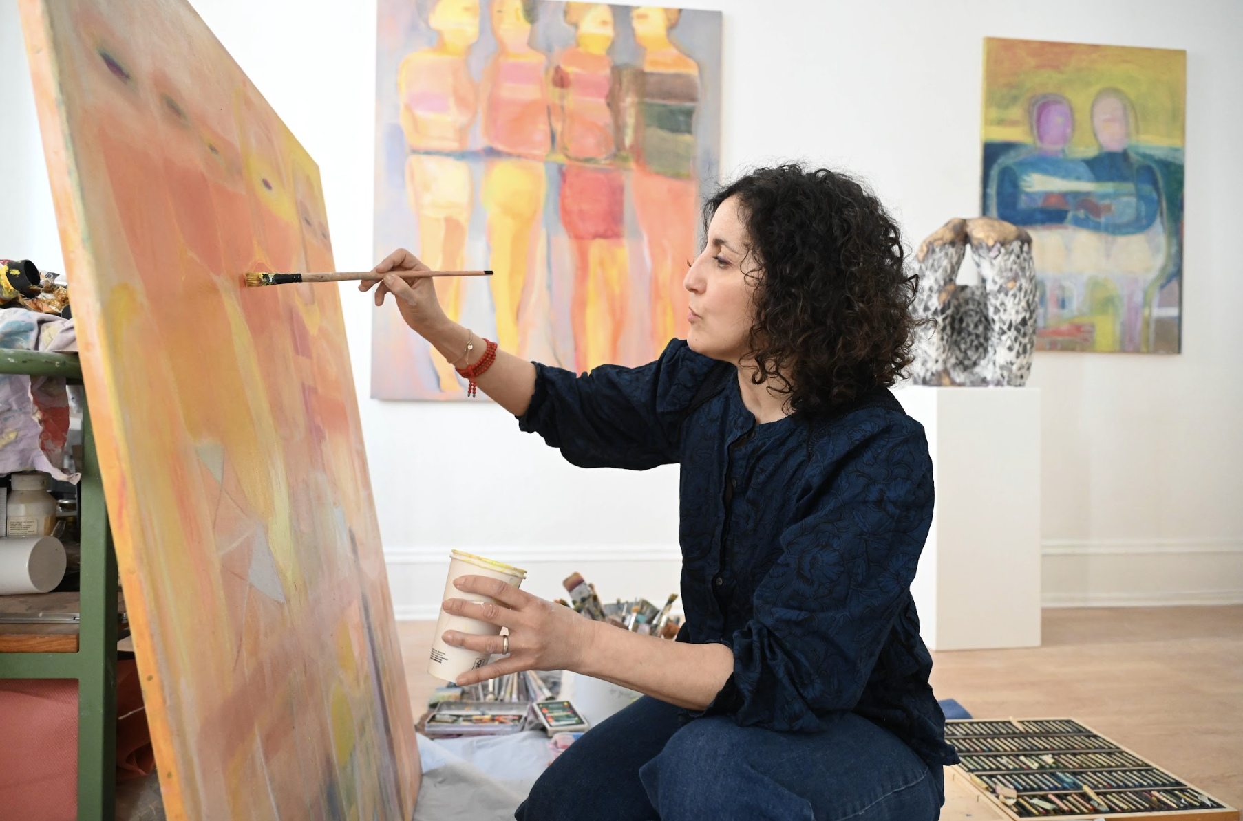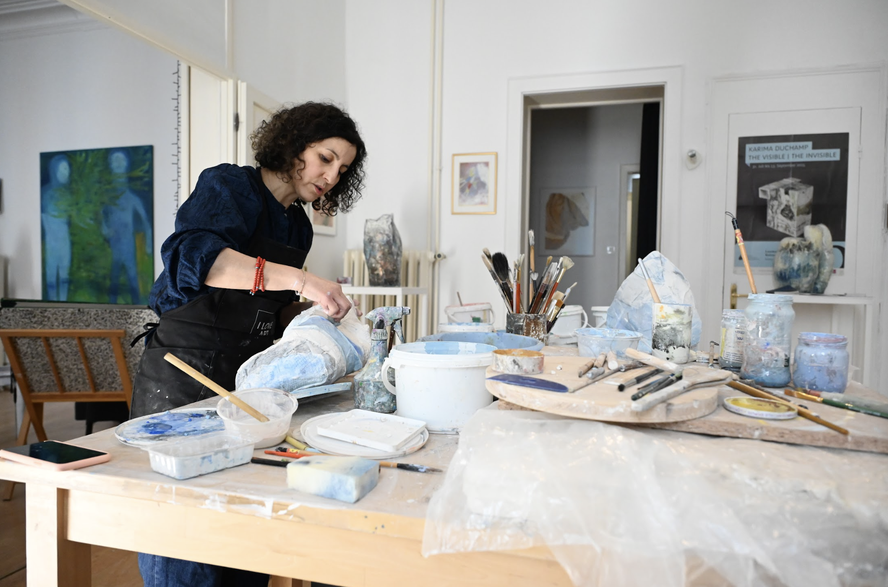 Karima Duchamp est une artiste céramiste et peintre française, diplômée des Beaux-Arts de Besançon. Son atelier est situé au Séchoir à Mulhouse depuis février 2025. Composée d’œuvres en céramique, de dessins et de peintures sur toiles, l’œuvre de Karima Duchamp est polymorphe. De sa formation de céramiste, elle a gardé le goût de la matière qu’elle travaille et retravaille afin d’atteindre légèreté, transparence et luminosité. Elle passe d’un médium à l’autre, afin que chacune des techniques enrichisse sa création. La matière de la terre, les couleurs printanières de sa palette, la lumière qui émane de ses œuvres, toutes ces manifestations visuelles et matérielles révèlent son cheminement créateur. Née en France de parents algériens, Karima Duchamp est animée par les liens conscients et inconscients liés à ses origines, se sentant passeuse d’histoires de femmes. Elle puise son inspiration dans les fresques historiques, l’ornementation et l’architecture vernaculaire. Dans une réduction de formes, elle cherche à aller à l’essentiel. Cette épure est motivée par une sensibilité au passage du temps dans une forme de contemplation et de nostalgie offrant un langage particulier pour lire et imaginer le monde. Son travail a remporté de nombreux prix et a été inclus dans des expositions individuelles et collectives à travers le monde telles que Paris Design Week, Collectible à Bruxelles, The Salon Art + Design à New York, Design Miami-Basel. Son œuvre a rejoint des collections privées et publiques telles que le musée Ariana à Genève, le musée de Grottaglie en Italie, le musée Siegburg en Allemagne, et le musée Yingge à Taïwan. Elle est membre de l’Académie Internationale de la Céramique et enseigne lors de workshops en France et à l’étranger. Elle participe régulièrement au Salon d’Automne et au Salon des Beaux-Arts à Paris. En 2025, une de ses toiles est sélectionnée pour une exposition au National Art Centre de Tokyo. En 2024, elle est lauréate de la bourse Mac Knight pour une résidence de trois mois au Northern Clay Centre de Minneapolis.